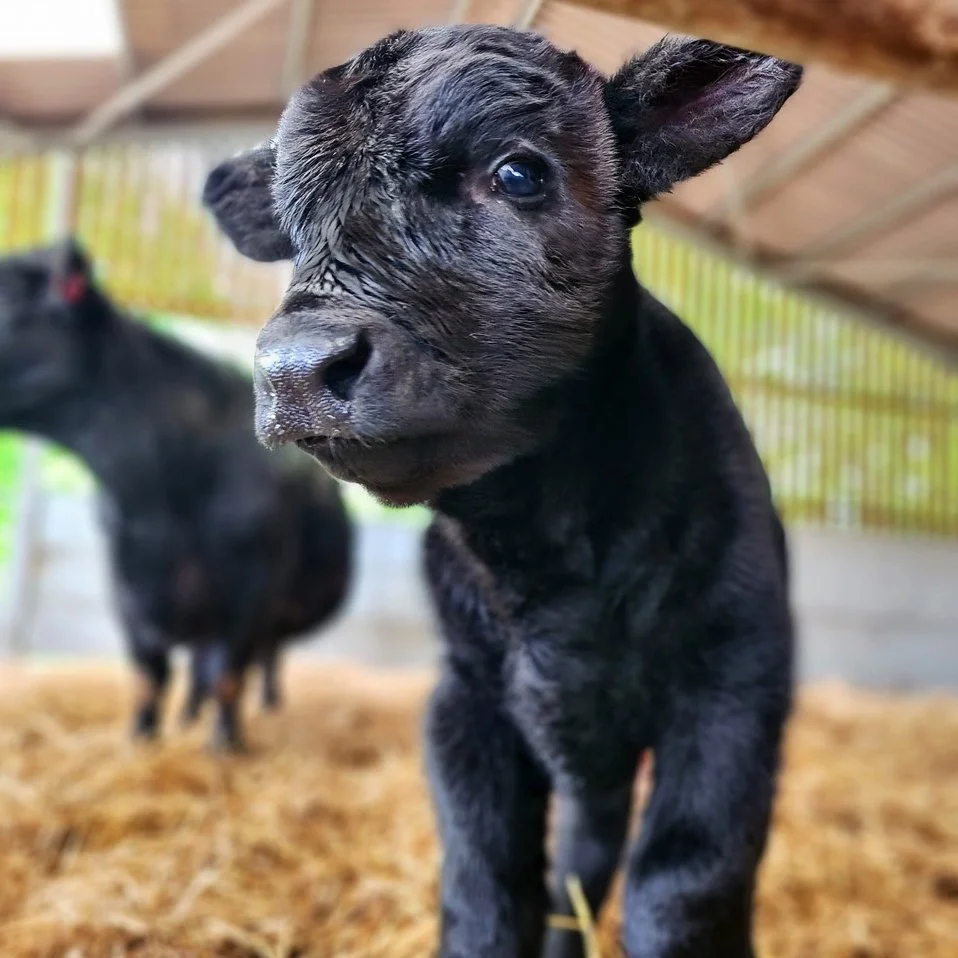 Come and see our newborn Welsh Black calves with their mums, and meet their impressive dad, Derek Blewgi, our handsome bull. Can you guess how much he weighs?